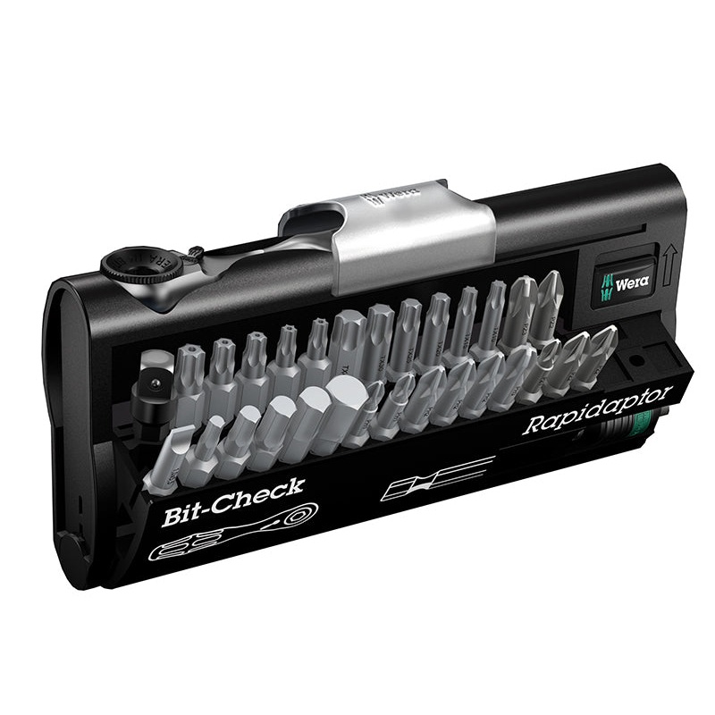 The Wera 8001A Bit Ratchet Bit Check Set is an ideal choice when lack of space prevents the use of power tools or conventional tools. The ergonomic ratchet head/handle, with Kraftform geometry has perfectly shaped contact zones for your fingers and, thanks