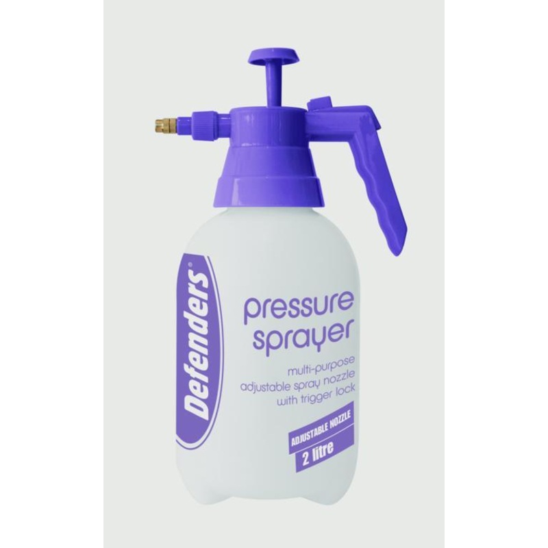 Pump-action pressure sprayer with adjustable spray nozzle and trigger lock.