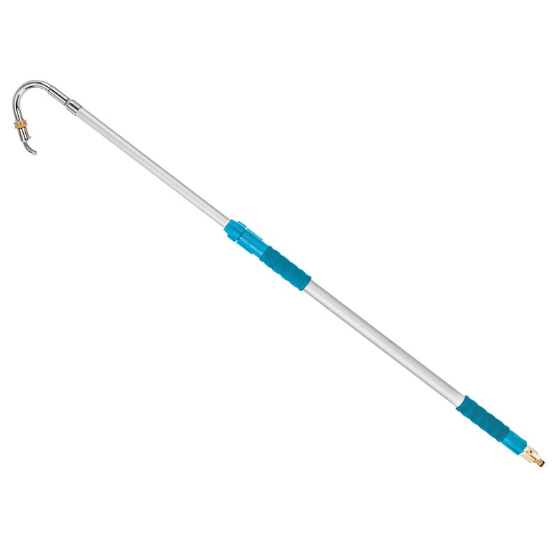 The Flopro Gutter Cleaner extends from 104cm to 174cm, ideal for cleaning debris from rain gutters. It has a stainless steel head and a comfort grip foam handle. The connectors allow a Snap Fit and ensure easy connection to all major watering brands.