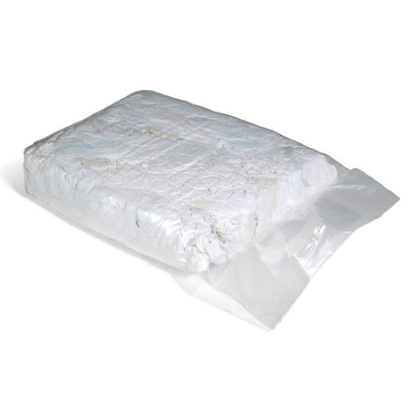 Sold in Pallets of 49 bales. Top quality T-shirt rags, great for cleaning! Comes in a 10 Kg Bag, handy size, handy weight, easy to use, easy to store. These rags are all purpose, high absorbency wiper. 100% white means very good when using solvents.